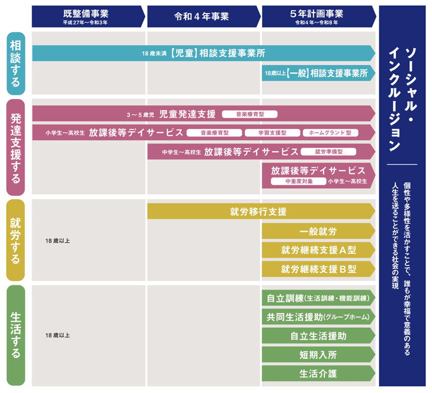 私どもはこれまで障害児支援・児童発達支援を主体とし事業を進めてまいりましたが、現在約300名の児童の支援を継続する中で、多くの子どもたちが、いよいよ社会人として巣立つ段階、時期を迎えようとしております。
